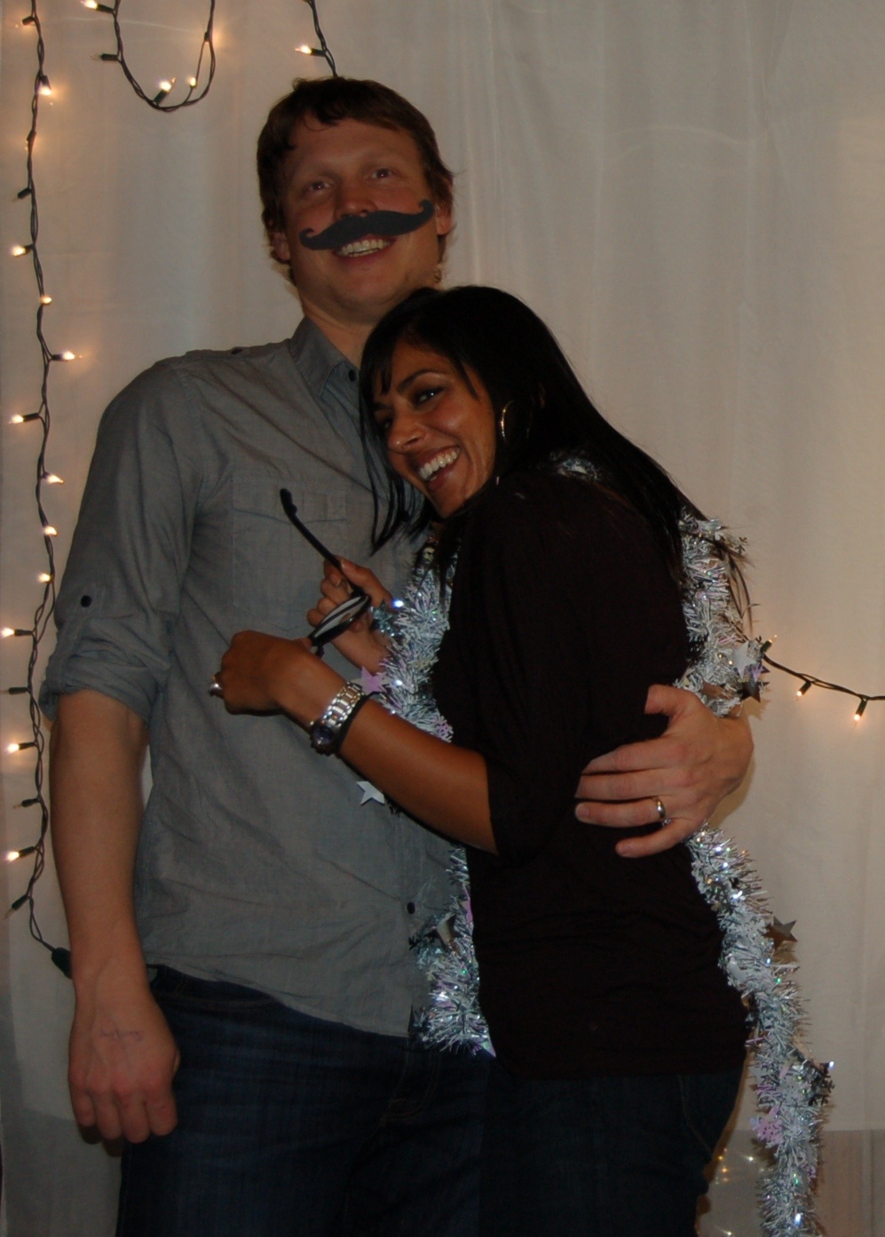 One of the most entertaining elements of the party was our homemade photobooth! We made everything using some white curtains as a backdrop, homemade mustaches and some cheap dollarstore props! I won't bore you with all the pictures, but here are some of my personal favorites!