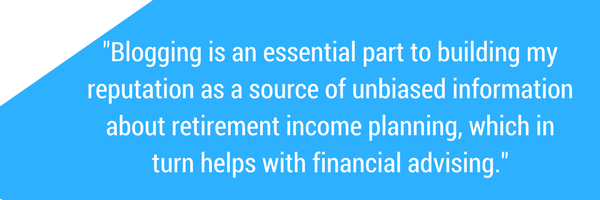 Blogging is an essential part to building my reputation as a source of unbiased information about retirement income planning, which in turn helps with financial advising.